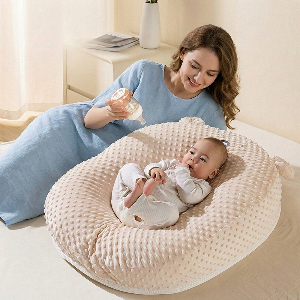 Vielseitige Nutzung (0–12 Monate): Geeignet als Babynestchen, Fütterungskissen (für die Flasche), Tummy-Time-Kissen und Sitzunterstützung.